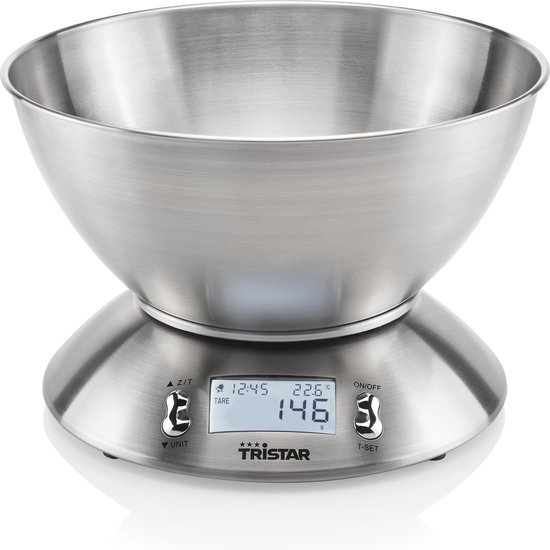 Daarnaast beschikt de Tristar KW-2436 keukenweegschaal over een geïntegreerde keukentimer, en een handige mengkom met een inhoud van 2.5 liter. Deze afneembare mengkom is gemaakt van roestvrijstaal, en is zeer eenvoudig schoon te maken.