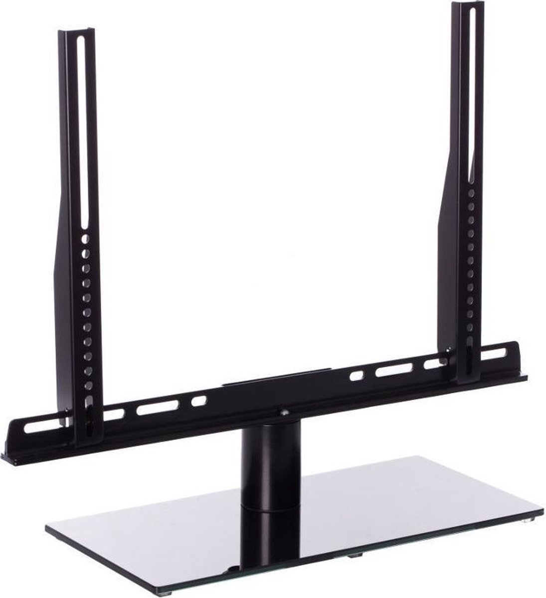 Met deze draaibare tafelstandaard zorgt ervoor dat u vanuit de ideale hoek naar de televisie kunt kijken. Deze standaard heeft een mooie zwart glazen voet met daarop een buisvormig pilaar waarop de televisie gedraaid kan worden.
